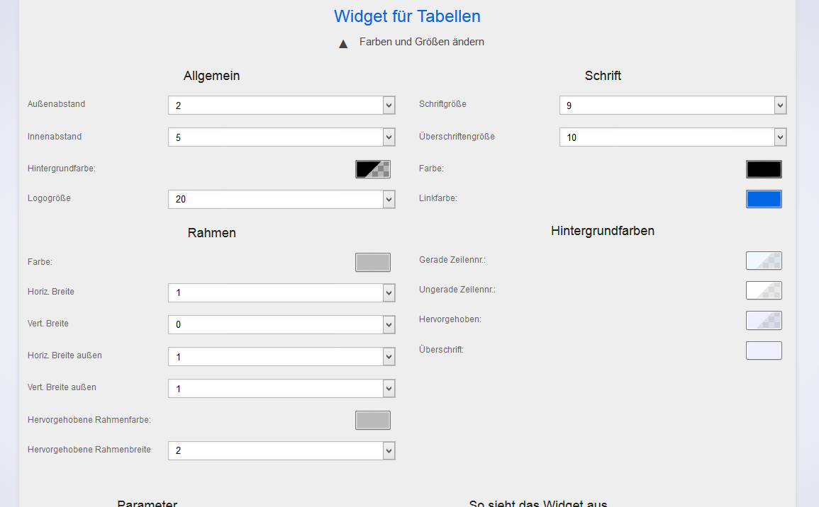 Probiere einfach aus, welcher Wert die Darstellung des Widgets wie verändert! Das macht sehr viel Spaß und am Ende lassen sich die Widgets so perfekt in das Design deiner Webseite einpassen.